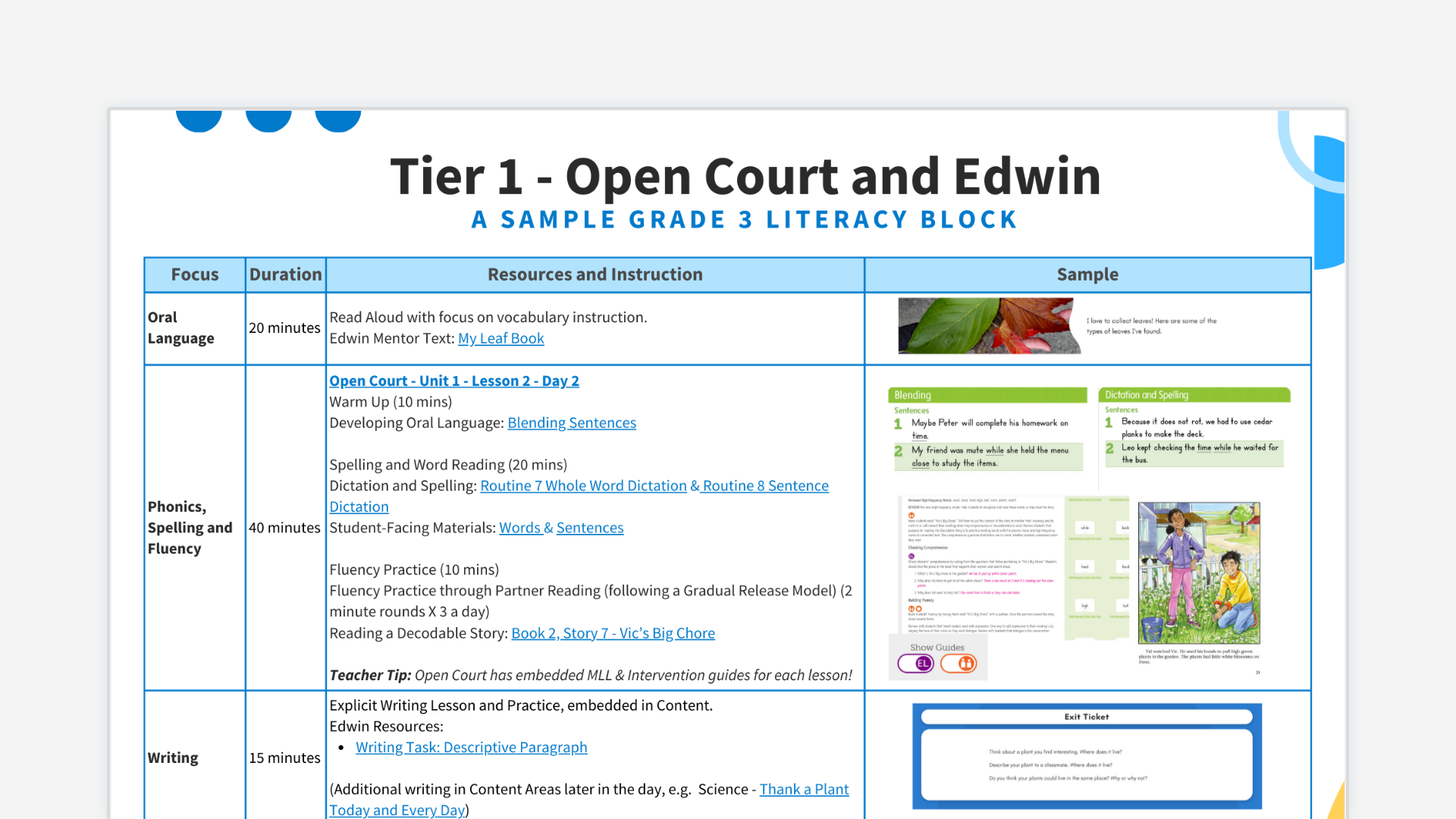 A sample that demonstrates how Nelson products can be used for comprehensive literacy support.